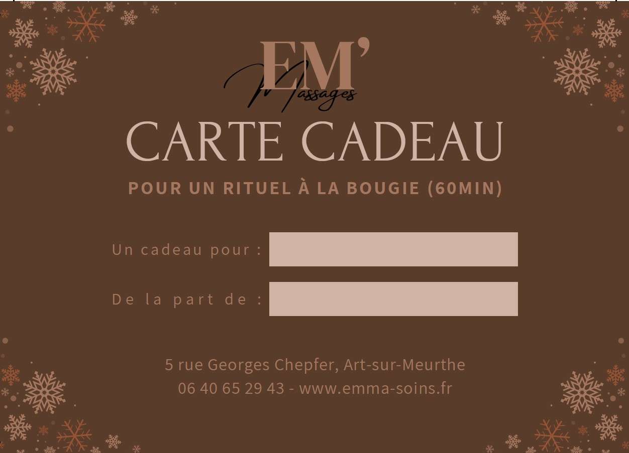 Offrez un moment d’exception aux senteurs de Noël, une heure de pur détente où la bougie fond en huile tiède et parfumée, enveloppant le corps de douceur et de chaleur. Vanille, orange, épices ou encore chocolat viennent éveiller les sens et apaiser les tensions, pour une parenthèse cocooning inoubliable.
